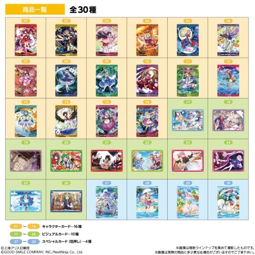 「東方LostWord」のウエハース第2弾が登場! ゲーム内美麗イラストがメタリックプラカードで堪能出来ます。 キャラクターカード、ビジュアルカード、箔押し仕様の スペシャルカードをラインナップ! ※東方LostWordは『東方Project』を原作とした公認二次創作作品です。 ●ココアクリーム味ウエハース1枚 (C)上海アリス幻樂団 (C)GOOD SMILE COMPANY, INC./NextNinja Co., Ltd.